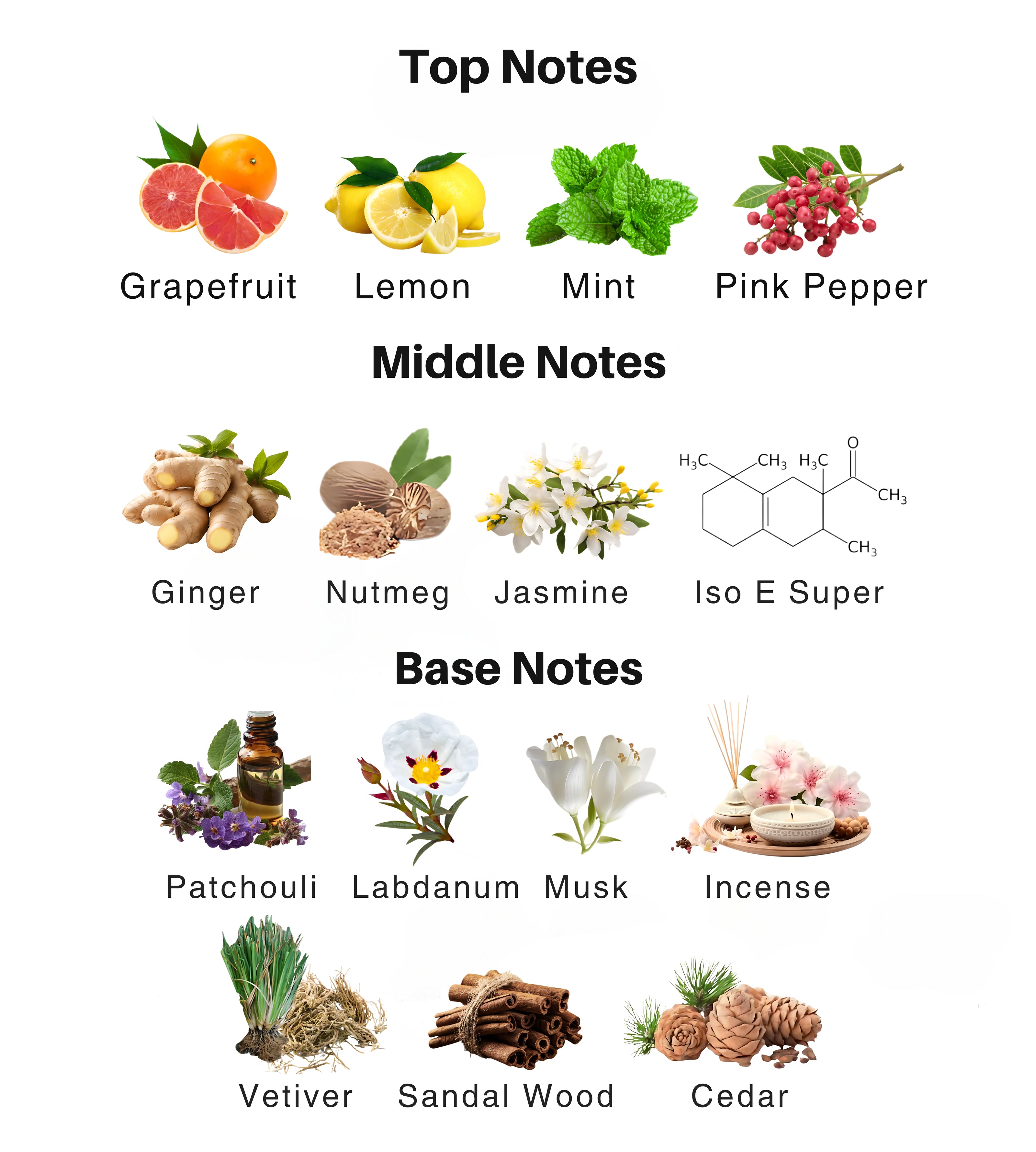 Midnight Wave is a sophisticated fragrance designed for men who embody confidence and depth. It opens with a refreshing burst of zesty lemon, cool mint, and spicy pink pepper, setting a bold and vibrant tone. The heart unfolds with warm ginger and aromatic jasmine, adding complexity and warmth. The fragrance finishes with rich notes of smoky incense, earthy vetiver, and sandalwood, leaving a powerful and lasting impression.