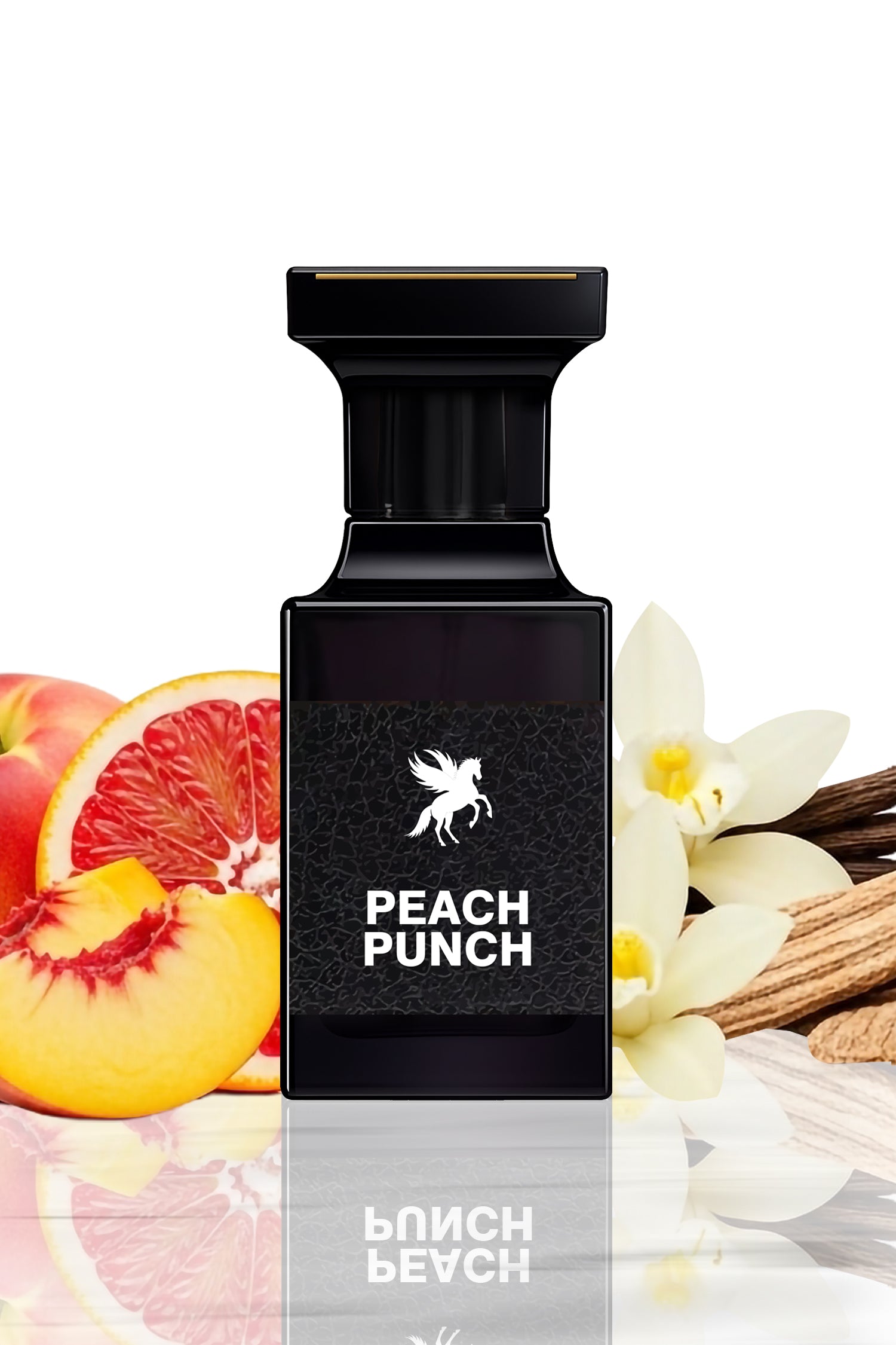 Peach Punch is a signature unisex fragrance — a bold and irresistible composition that captures attention from the very first spray. It opens with a juicy burst of ripe peach and zesty blood orange, delivering a luscious, slightly tart freshness. As it settles, warm notes of rum, davana, and jasmine emerge, adding a deep, intoxicating heart. The base is smooth and indulgent, with creamy sandalwood, vanilla, tonka bean, and earthy patchouli blending into a rich, sensual trail. Loved by both men and women, Peach Punch is the ultimate statement of playful elegance and lasting allure.