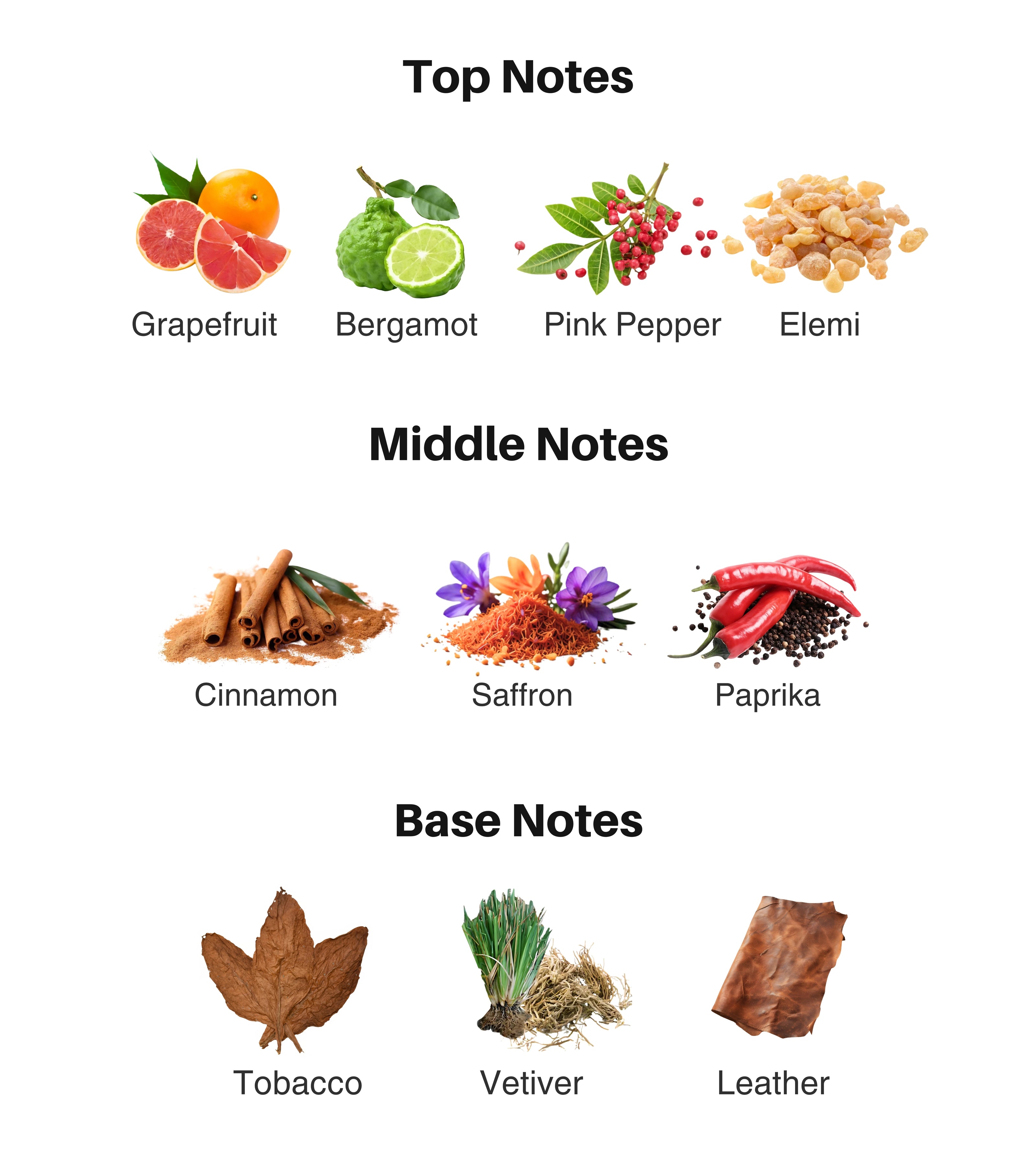 Tobacco Ignite is a bold and captivating fragrance designed for men who embrace intensity and sophistication. It opens with an intense burst of pink pepper, bergamot, and cinnamon, creating a fiery and energizing introduction. The heart reveals a refined blend of tobacco, saffron, and leather, adding depth, richness, and sensual appeal. The base is warm and long-lasting, featuring vanilla, vetiver, and woody notes, leaving a smooth yet powerful finish.