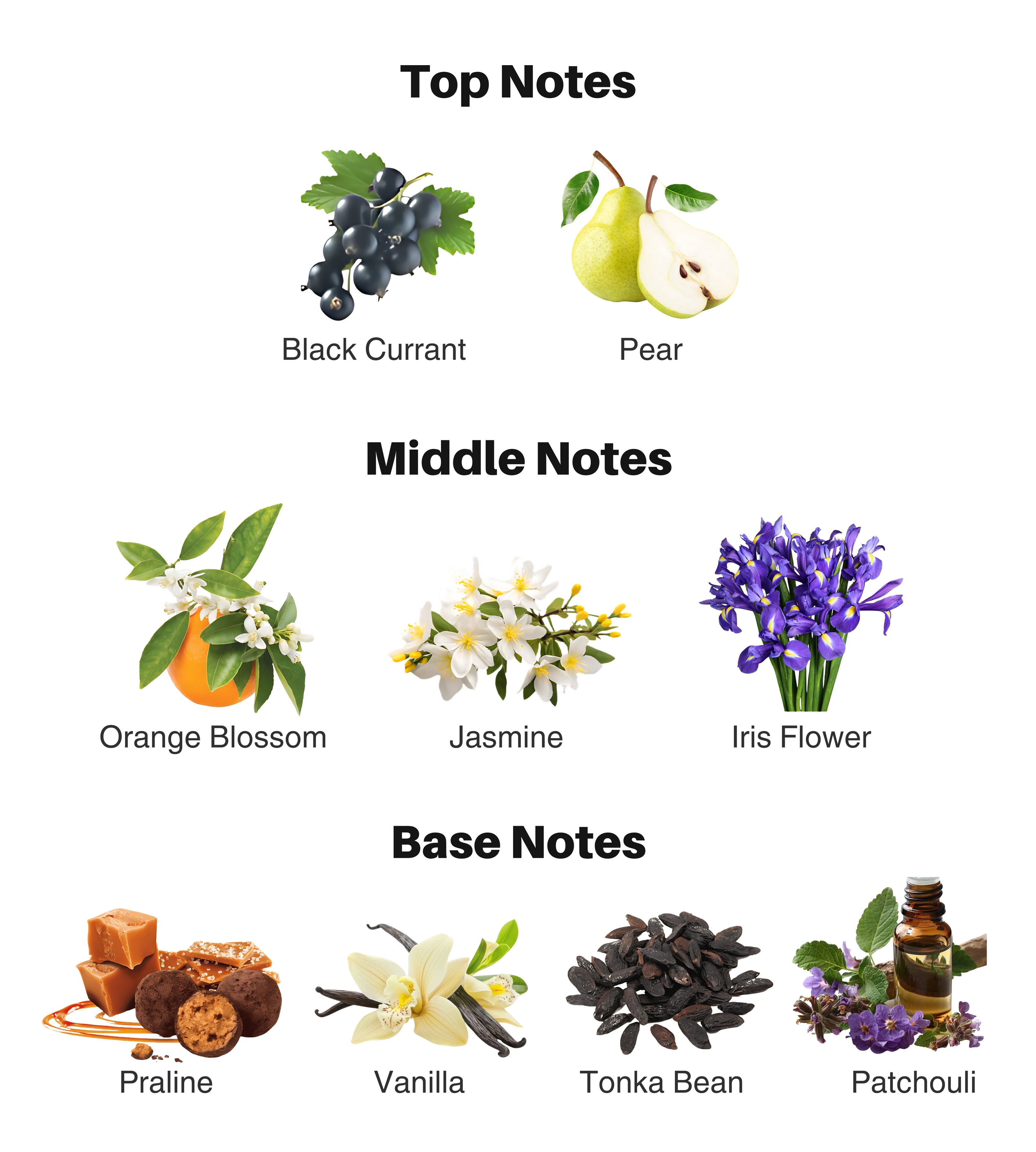 Vanilla Bliss is a radiant and addictive fragrance crafted for women who adore warmth and elegance. It opens with a sparkling burst of blackcurrant and pear, adding a juicy, fruity freshness. At its heart, a delicate bouquet of iris, jasmine, and orange blossom blooms with graceful charm. The base unfolds into a creamy, indulgent blend of vanilla, praline, tonka bean, and patchouli — leaving a sweet, warm, and irresistibly lasting impression.