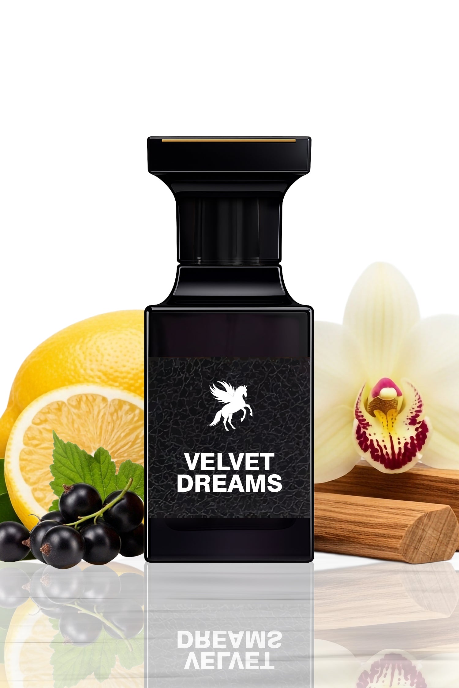Velvet Dreams is a dark and luxurious fragrance for women, weaving rich florals, warm spices, and deep woods into a hypnotic symphony. It opens with an intriguing blend of truffle, blackcurrant, and citrus, setting a mysterious tone. At its heart, black orchid, jasmine, and ylang-ylang create an opulent floral core. The base is intense and long-lasting, with patchouli, vanilla, sandalwood, and incense leaving behind a warm, seductive trail.